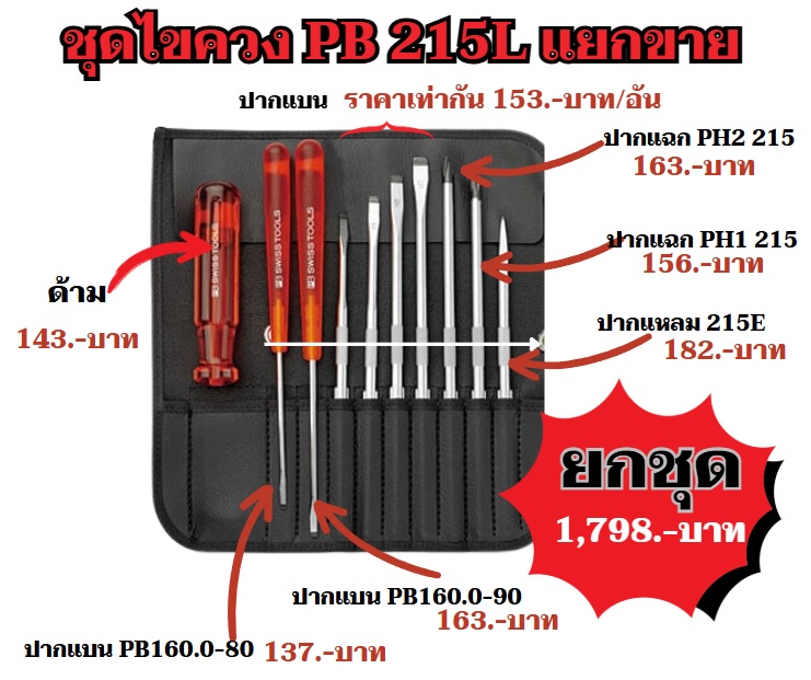 ชุดไขควง PB Swiss Tools รุ่น 215L 10ตัว/ชุด