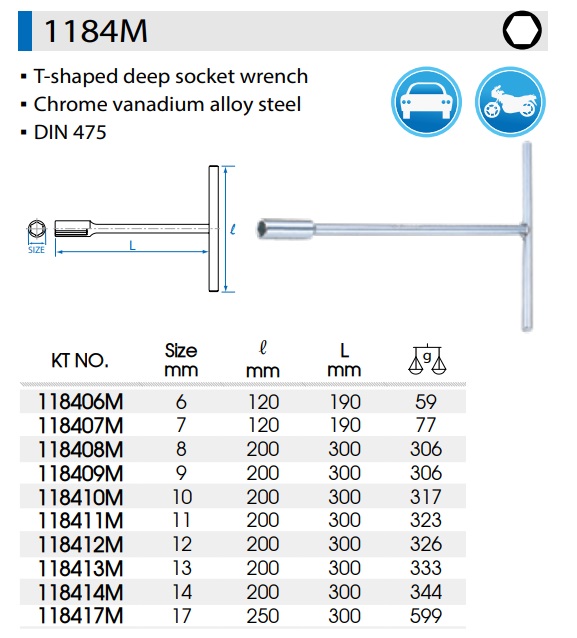 บ๊อกตัวที คอลึก Deep Socket T-Type Wrench 1184 KINGTONY บ๊อกตัวทีคอยาว