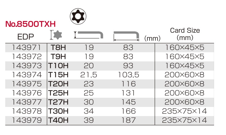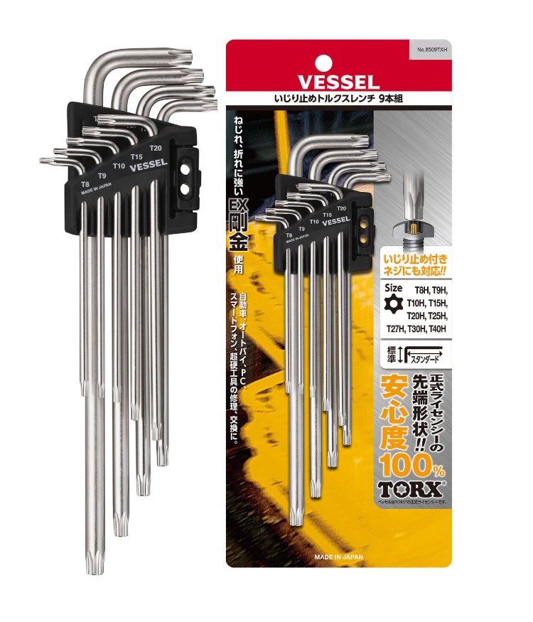ชุดประแจแอล หัวท็อค T8H-T40H Vessel Tamper-proof TORX Wrench 9-pc set No.8509TXH(8500TXH 9-pc set)