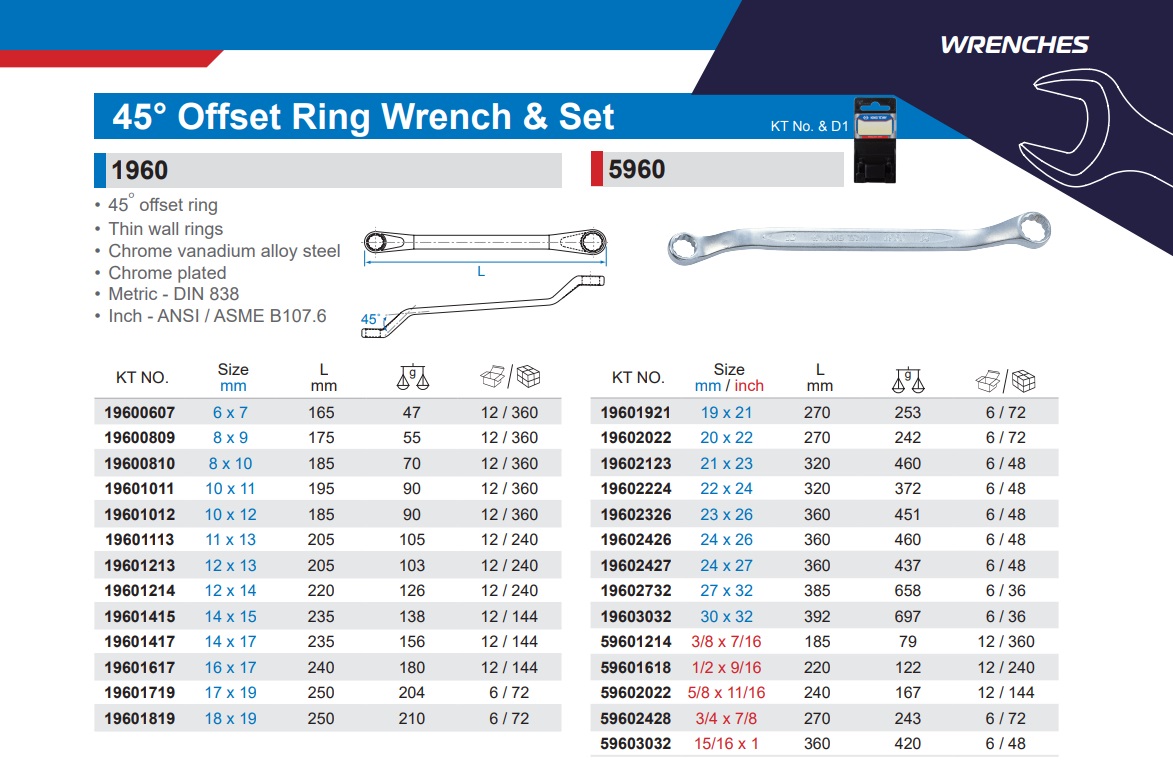 KINGTONY ประแจแหวนคอ 45องศา 1960 45° Offset Ring Wrench MM