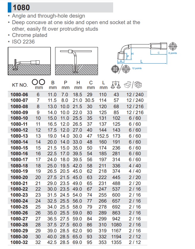 ประแจบ๊อกตัวแอล 2หัว KINGTONY 1080 Angled Socket Wrench 12PT x 6PT