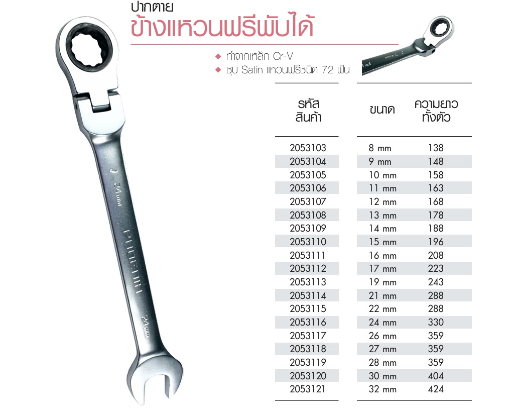 Material: Chrome-Vanadium(Cr-V) steel ชุบ Satin ฟรีสปีด 72ฟัน