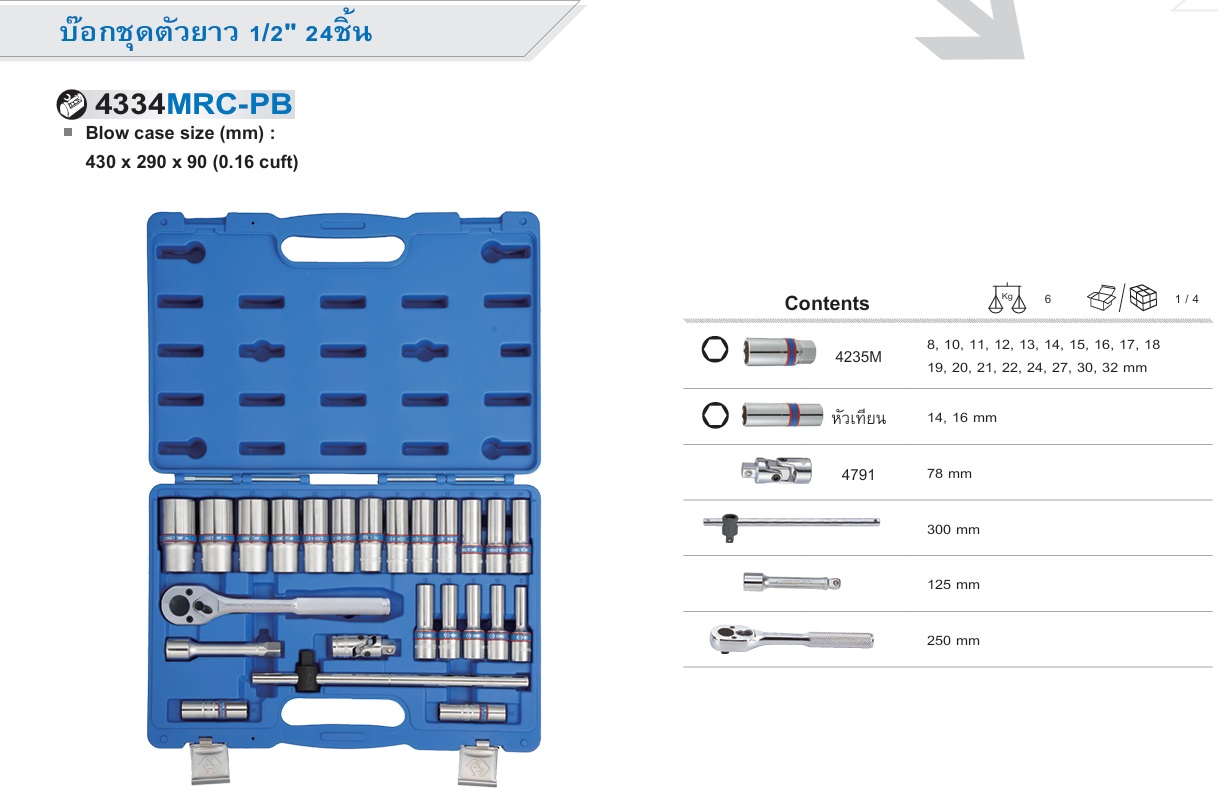 บ๊อกชุดตัวยาว 1/2" 24ชิ้น 4334MRC-PB KINGTONY