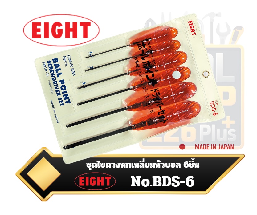ชุดไขควงหกเหลี่ยมหัวบอล 6ตัวชุด BDS-6 EIGHT Ball point plastic handle hex key screwdriver 6-piece vinyl pouch set.