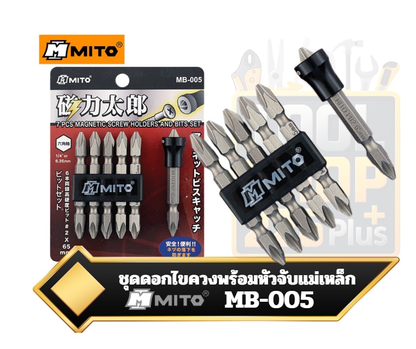 MITO ดอกไขควง 2หัว PH2x65mm. พร้อมหัวจับแม่เหล็ก 7ตัวชุด MB-005 Screwdriver Bit Set