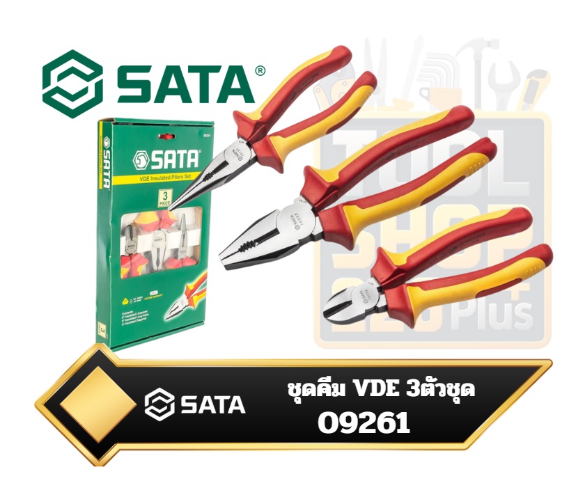 ชุดคีมช่างไฟหุ้มฉนวน 3ตัวชุด Sata 09261 3pcs VDE Insulated Pliers Set
