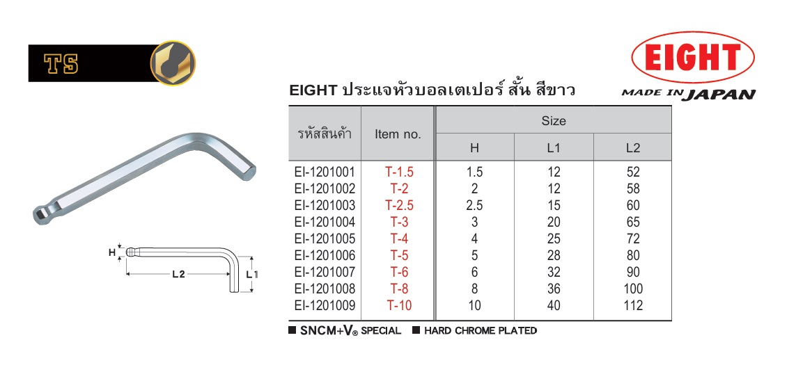 ประแจหัวบอลเตเปอร์ สั้นสีขาว ประแจแอลหัวบอลสั้นสีขาว / ประแจหกเหลี่ยมหัวบอลสั้น ญี่ปุ่น TS EIGHT