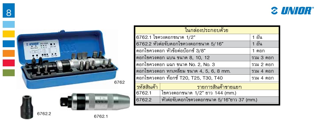 Unior ชุดไขควงตอก 16 ชิ้น ในกล่องเหล็ก รุ่น 6762 Screwdriver Ratchet with 16 Interchangeable Tips