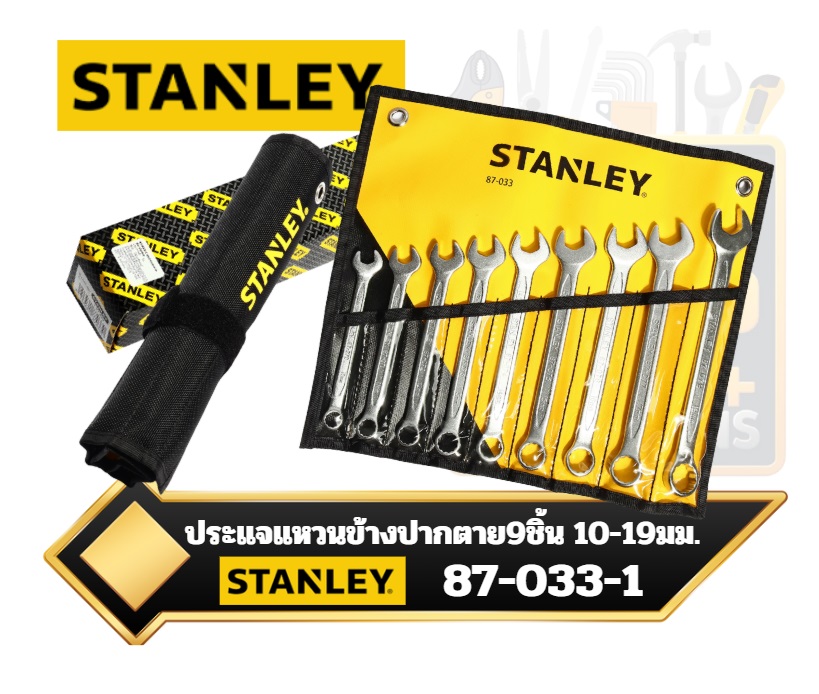 STANLEY 87-033 ชุดประแจแหวนข้างปากตาย 9ชิ้น 10-19มม. Combination Wrench Set