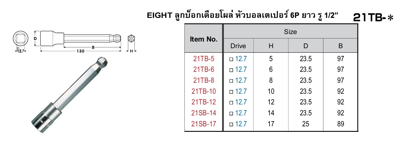 ประเภทสินค้า: ลูกบ็อกซ์เดือยโผล่หัวบอลเตเปอร์ 6P ยาว รู 1/2"