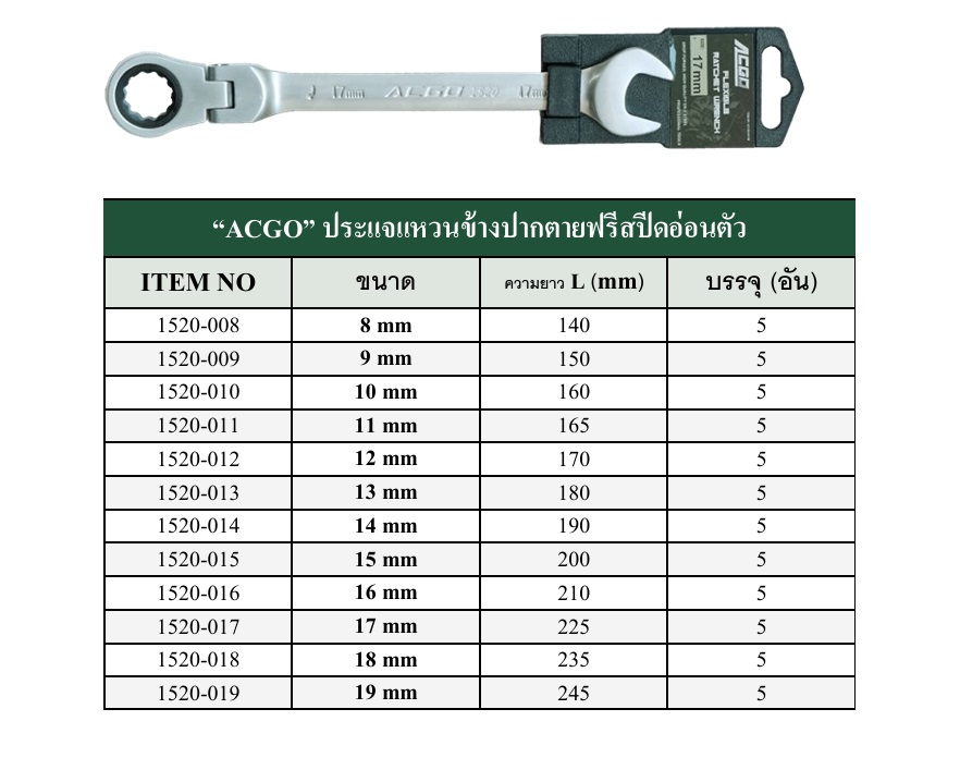 ACGO ประแจแหวนข้างปากตายฟรีสปีด คอพับ Combination ratchet wrench ( flexible head )