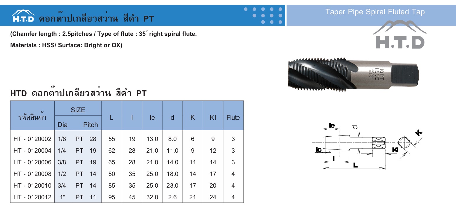 ดอกต๊าปเกลียวสว่าน H.T.D HSSE เกลียว PT