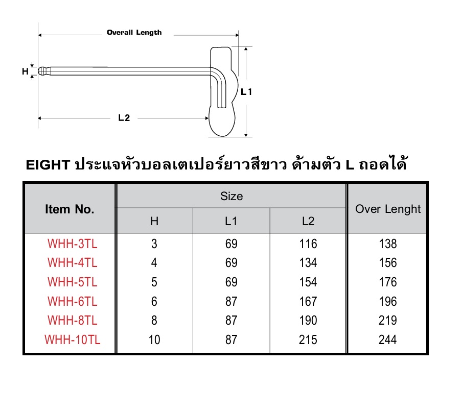 ชุดประแจหกเหลี่ยมตัว T จาก Eight รุ่น WHH-S6TL T-Type Hexagon Wrench Taper Head (R) Extra Long Separable Plastic Handle