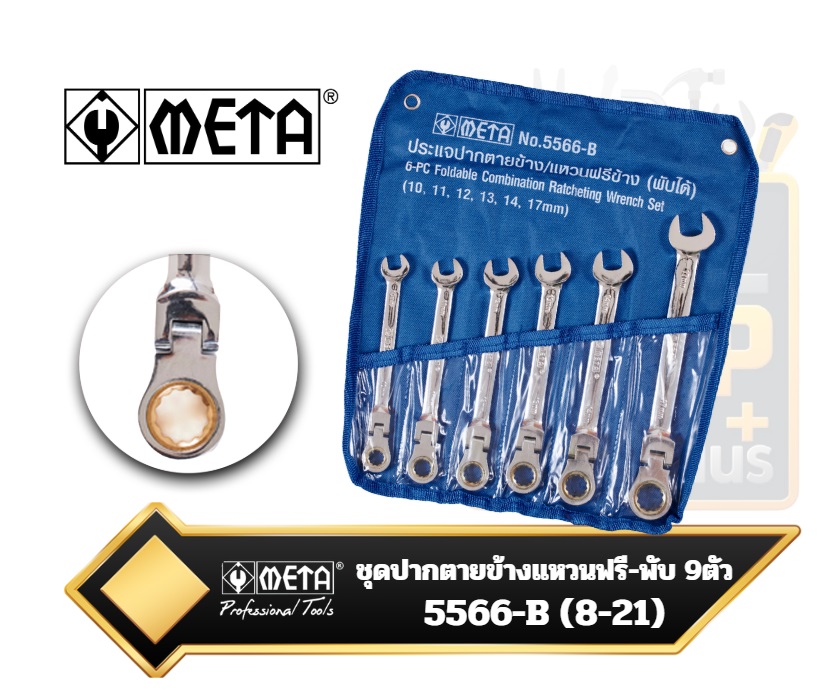 ชุดประแจปากตายข้างแหวนฟรี คอพับ 5566-B - 9ตัวชุด META 8-21 mm.