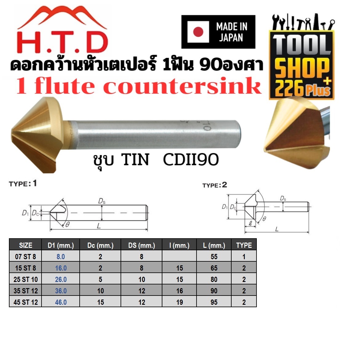 ดอกคว้านหัวเตเปอร์ HSS สีทอง 1 ฟัน รุ่น CDII-90 จาก HTD Countersink Single Flute TiN coated
