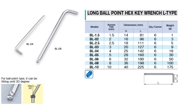 ประเภท: ประแจแอลหัวบอล (ยาว)