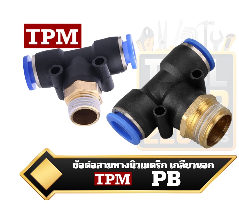 ข้อต่อนิวเมตริก, สามทาง, เกลียวนอก ,TPM , ข้อต่อลมแบบสามทาง, (,Pneumatic ,Tee, Fittings,) ,PB