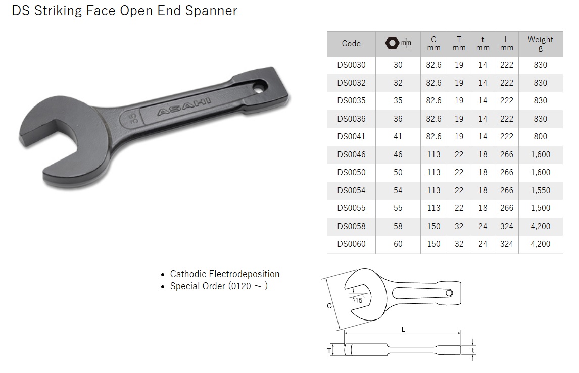 ประแจปากตายทุบ ASAHI DS Striking Face Open End Spanner