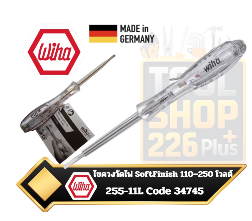 WIHA ไขควงวัดไฟ SoftFinish 110–250 โวลต์ หัวแบน ใสโปร่งแสง พร้อมคลิปแบบสวม รุ่น 255-11L รหัส 34745 (วีฮ่า) 255-11 (รหัส 34745)