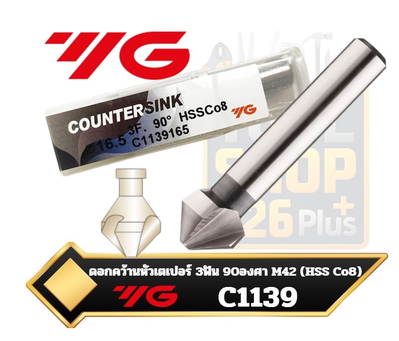 ดอกคว้านเตเปอร์ HSS Co8 3 ฟัน 90° #C1139 YG(42M) คว้านสแตนเลส 3 FLUTE COUNTERSINKS 90°