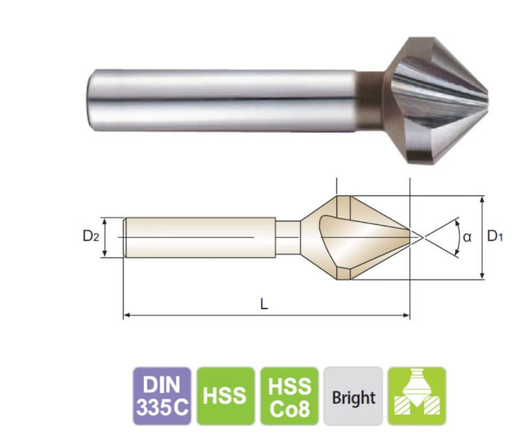 วัสดุ: ผลิตจาก HSS Co8 (เหล็กกล้าความเร็วสูงผสมโคบอลต์) ตามมาตรฐาน DIN 335 C