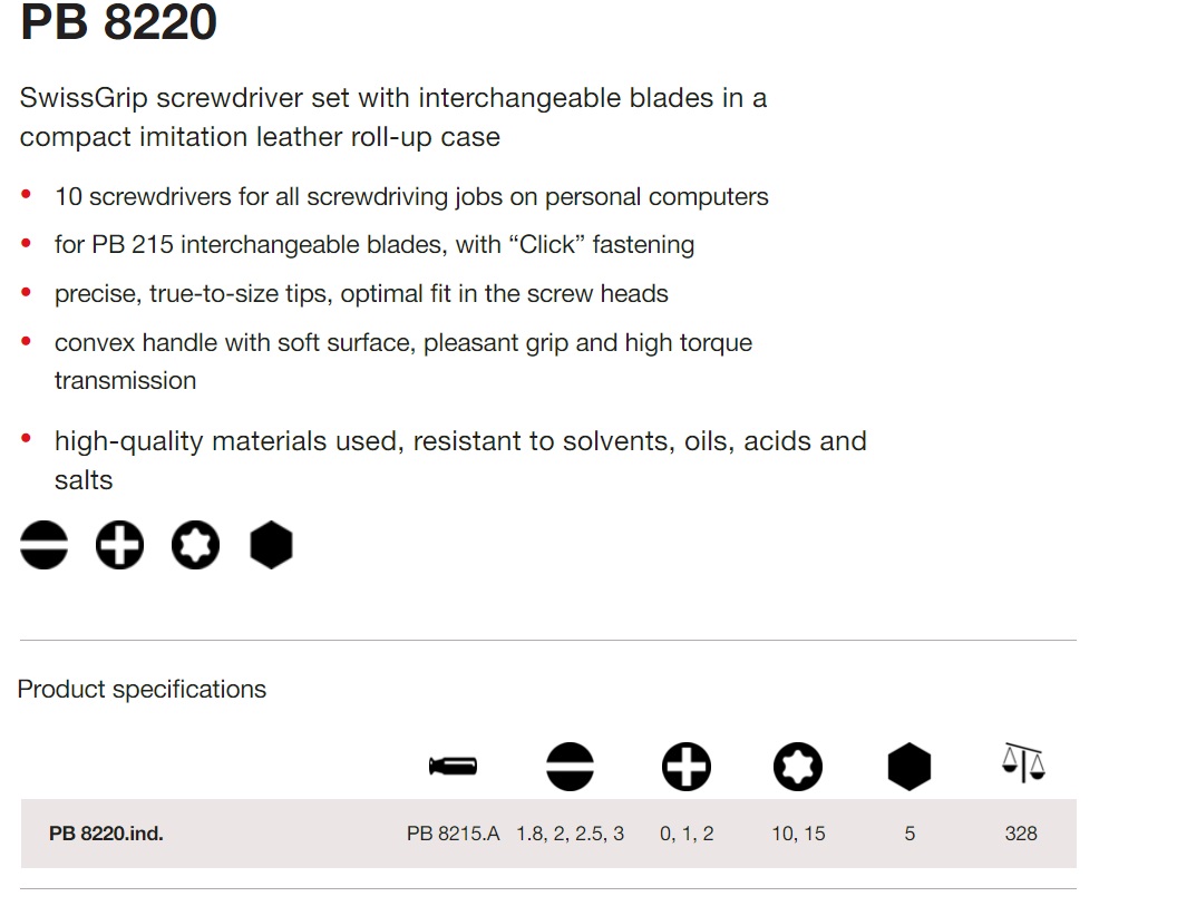 PB 8220 ชุดไขควงแบบเปลี่ยนหัวได้ interchangeable blade screwdriver set PB Swiss Tools