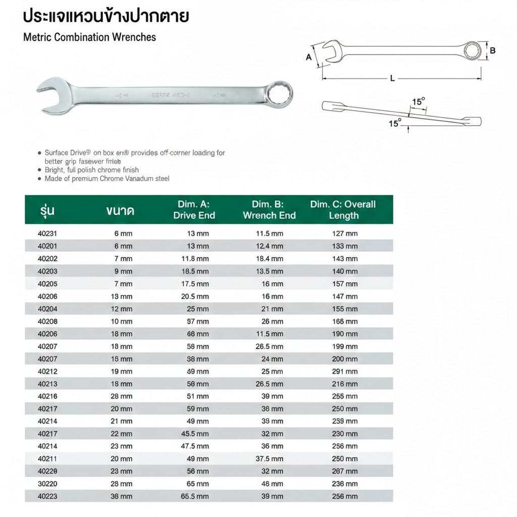 การใช้งาน: ใช้สำหรับงานขันและคลายทั่วไป ทั้งในงานช่างยนต์และงานซ่อมบำรุงต่างๆ