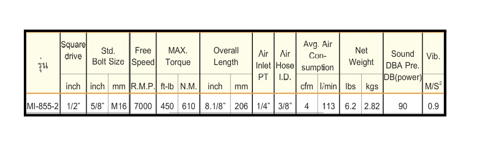 การใช้งาน: ออกแบบมาเพื่อใช้ในงานซ่อมบำรุงยานยนต์ งานประกอบโครงสร้าง หรือโรงงานอุตสาหกรรมที่ต้องการเครื่องมือลมที่มีความทนทานและกำลังสูง