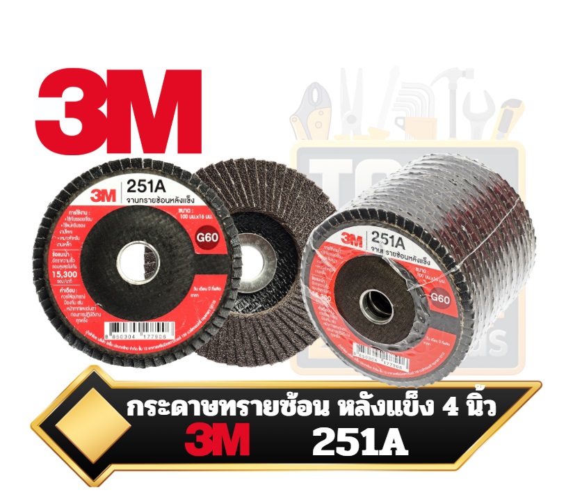 3M หลังแข็ง" โดยทั่วไปหมายถึง จานทรายซ้อนหลังแข็ง (Flap Disc) ขนาด 4 นิ้ว ซึ่งเป็นอุปกรณ์สำหรับเครื่องเจียร์ไฟฟ้า ใช้ในงานขัดแต่งผิวโลหะ งานไม้ ลบรอยเชื่อม และลบคม  3เอ็ม